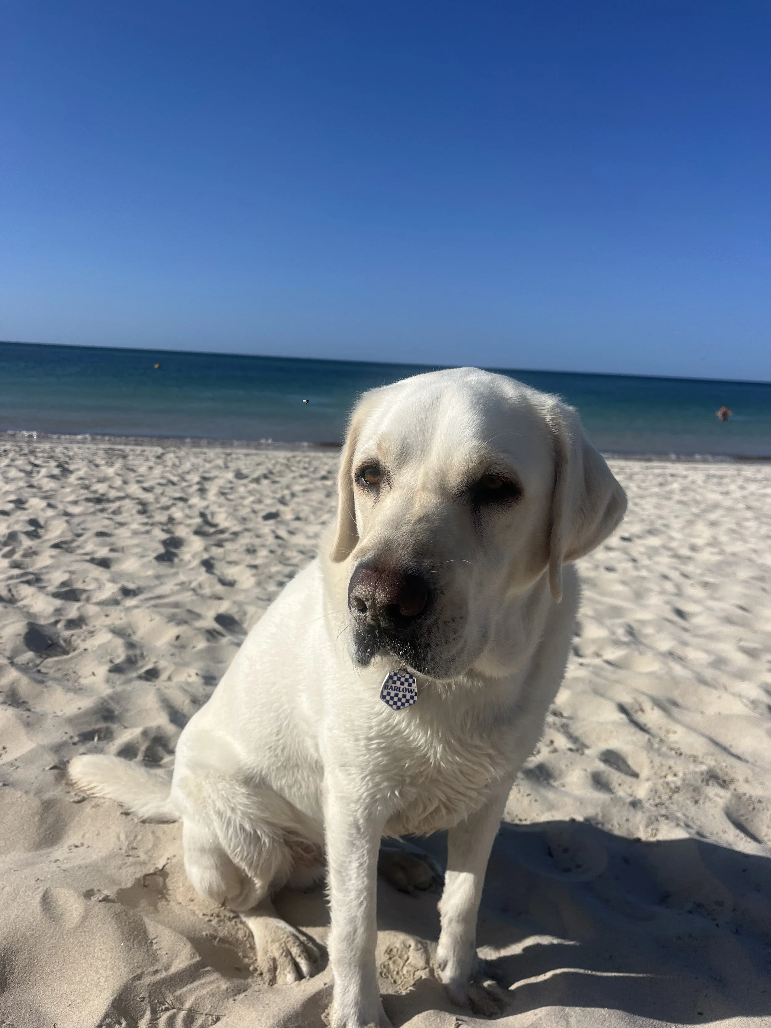 His background as a guide dog shines through in his patience, attentiveness, and gentle nature.